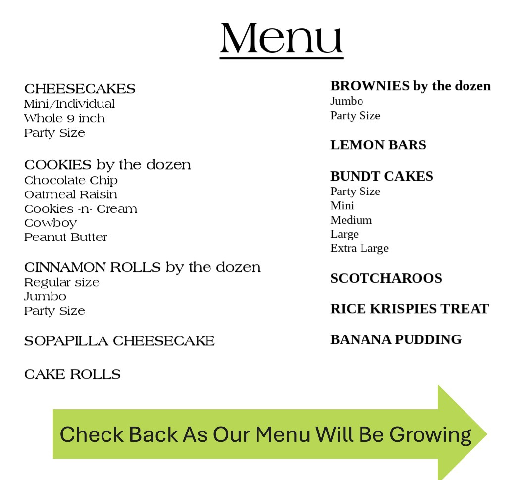 Everything on the menu is available to order with a 24-48 hour notice.